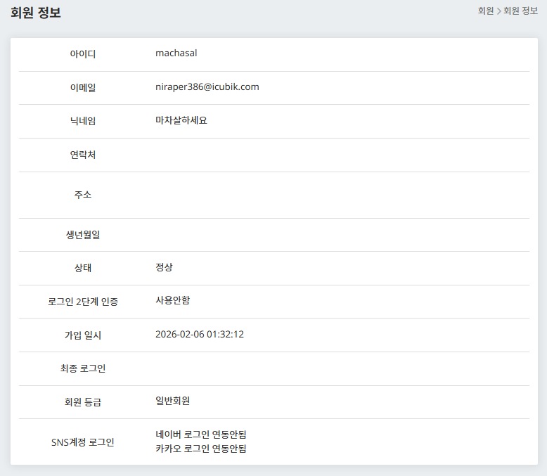 (해당 계정은 일회용 이메일 가입 테스트를 위해 가입된 제작자 아이디입니다!)